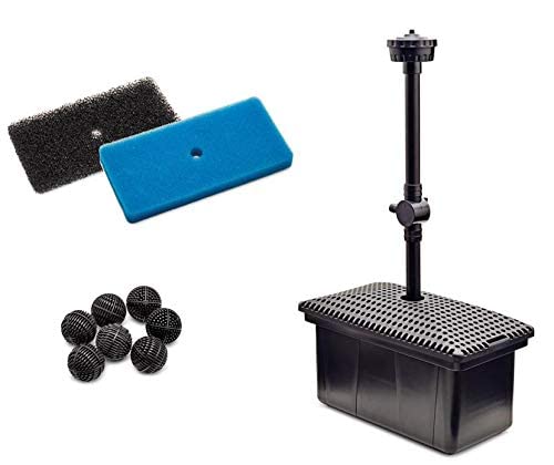 - Lieferumfang: Filterbox mit zwei Filterschwämmen und Bio Balls sowie Pumpe, Rohrverbindungsstück und Düse